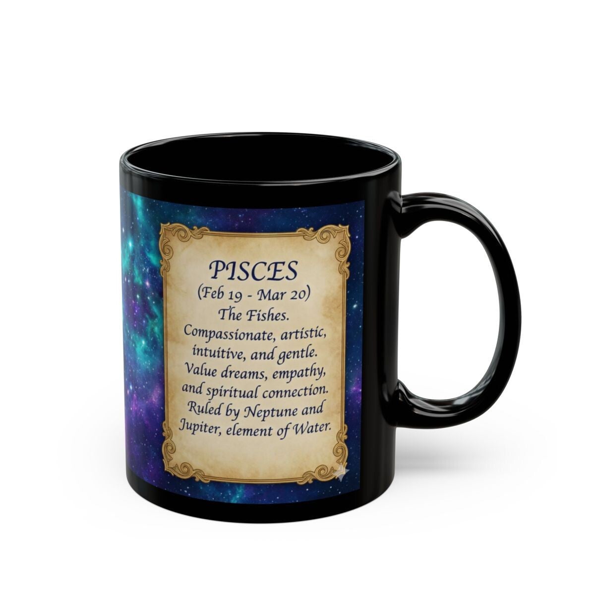 Pisces Zodiac Black Mug[[*STYLE A]] — Astrology Coffee Cup with Pisces Traits (Feb 19–Mar 20)